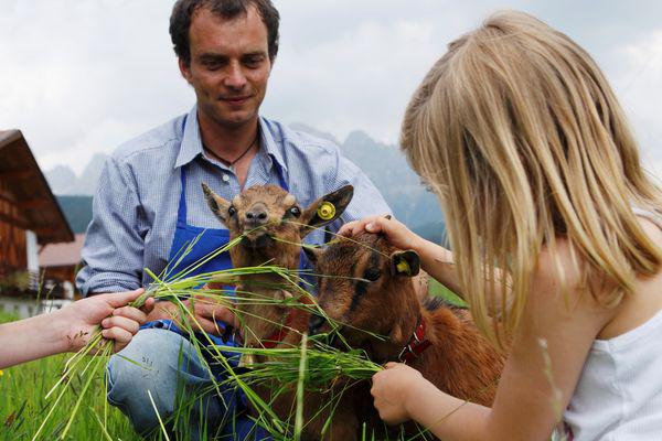 Die Alpen sind ihr Terrain: Südtirols Bergschafe und -ziegen Ziegen auf einem Bauernhof von "Roter Hahn". Bildnachweis: "Roter Hahn"/Frieder Blickle...